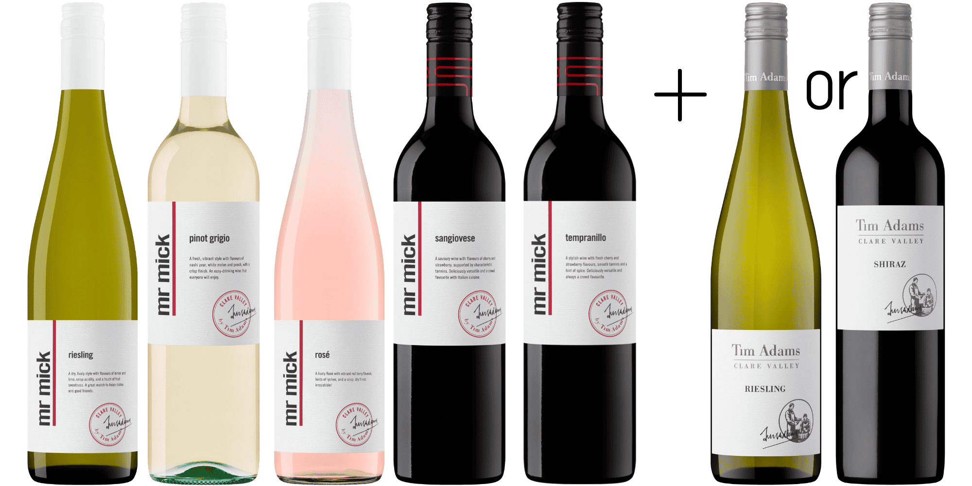 Select 5 bottles of Mr. Mick Wines and receive a bonus bottle of Tim Adams Riesling or Shiraz.